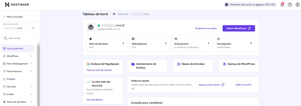 En utilisant hPanel, vous pouvez gérer efficacement vos activités en ligne à partir d’un seul endroit, garantissant une expérience d’hébergement sécurisée et optimisée.