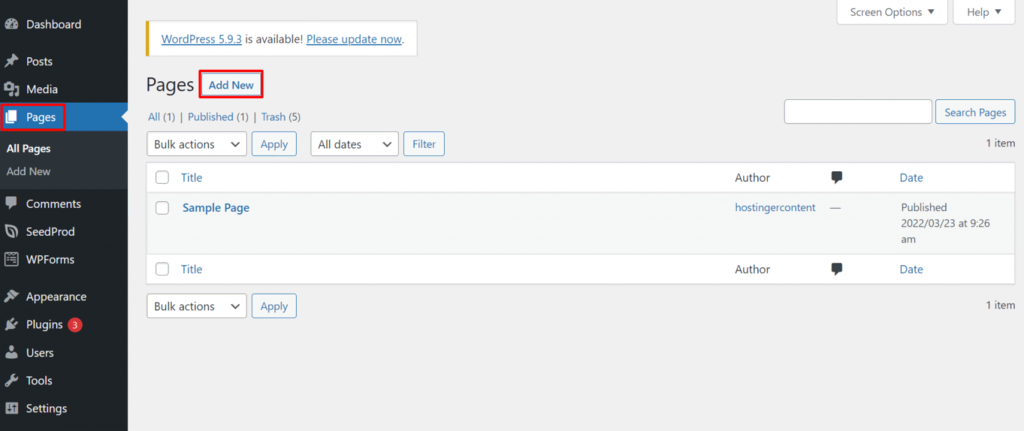 Suivez les étapes ci-dessous pour ajouter une nouvelle page WordPress :