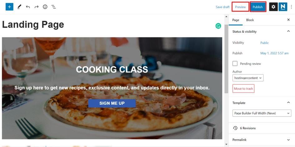 Après avoir modifié le template de page et configuré les outils tiers, il est temps de publier votre landing page WordPress.