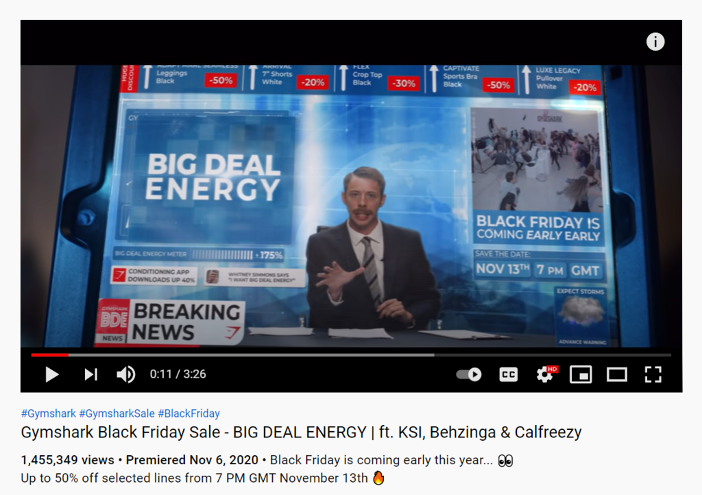 Si vous souhaitez cibler les clients de la génération Z et les milléniaux, envisagez de suivre les traces de Gymshark. La vidéo de leur campagne Black Friday 2020 démontre d’excellentes pratiques pour attirer les jeunes générations.
