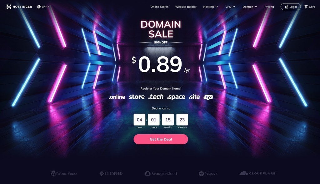 L’année dernière, pour la campagne du Black Friday, Hostinger a lancé une réduction allant jusqu’à 90 % sur tous les produits d’hébergement web et de domaine. Plusieurs stratégies ont été mises en œuvre pour commercialiser ces offres :
