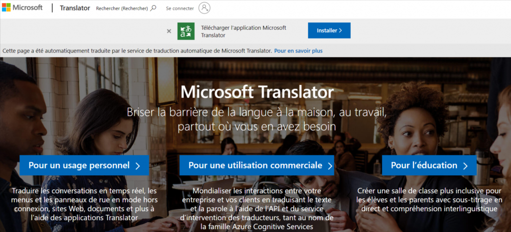 Microsoft Translator est un produit technologique de Microsoft qui fait partie de la suite Azure Cognitive Services. Il prend en charge plus de 60 langues et est intégré dans divers produits Microsoft tels que Word, PowerPoint et Outlook. Il est également disponible en tant qu’application mobile autonome.