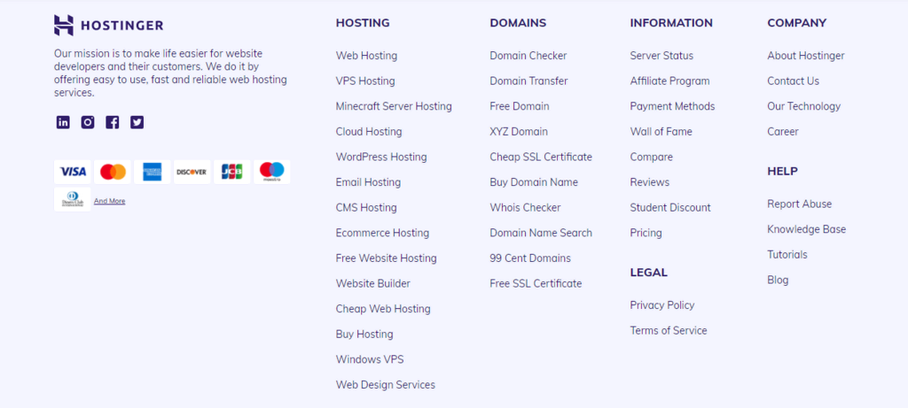 Il n’est pas nécessaire d’inclure tous ces éléments. Sélectionnez ceux qui sont pertinents pour votre site internet afin d’éviter que le pied de page n’occupe la moitié de la page web.
