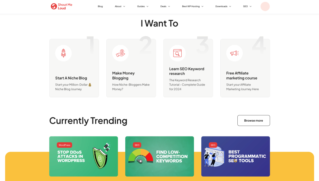 ShoutMeLoud, par exemple, crée des guides sur la construction d’une présence en ligne. Il promeut des produits affiliés tels que des outils de référencement et de marketing qui répondent aux besoins de son public.