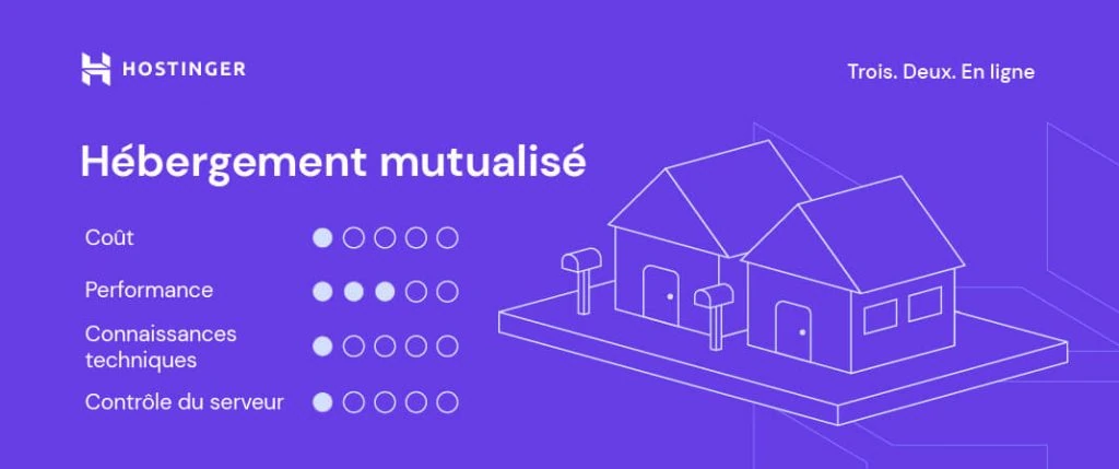 L’hébergement mutualisé est évalué en fonction de son coût (faible), de ses performances (moyennes), de ses connaissances techniques (faibles) et du contrôle du serveur (faible). Vous pouvez utiliser un gestionnaire de VPS comme le Cyberpanel pour gérer votre serveur mais il requiert des connaissances techniques