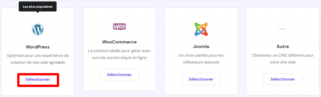 3. Cliquez sur Sélectionner dans la section WordPress.