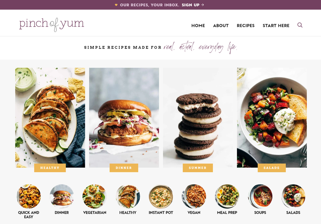 Ce blog WordPress est connu pour ses recettes simples et faciles à suivre. Avec des tonnes de plats dans sa collection, il utilise le système de taxonomie du CMS pour classer ses articles de blog.