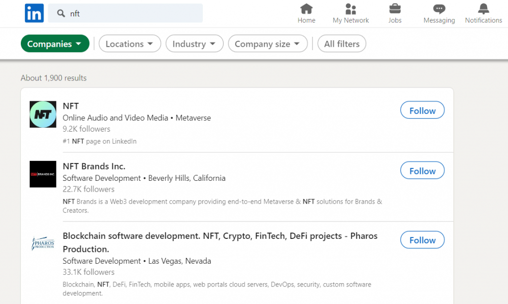 Faites des recherches sur les sites de réseaux sociaux tels que LinkedIn pour découvrir de nouvelles pistes potentielles en dehors des moteurs de recherche. En utilisant la base de données de LinkedIn, vous pouvez obtenir plus de détails sur l’entreprise, comme le nombre d’employés, le lieu et le type d’industrie.