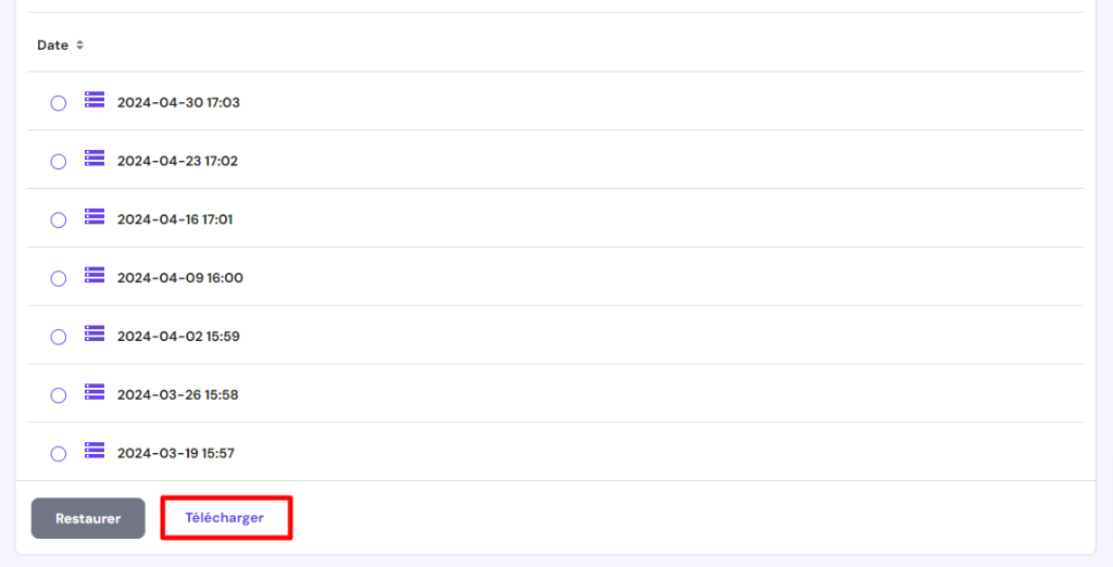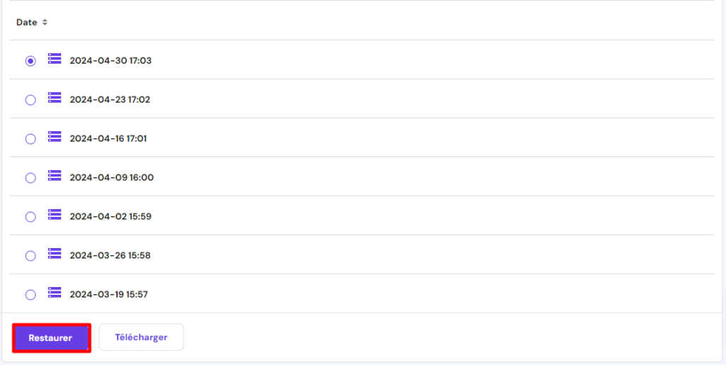Si vous préférez ne pas télécharger les données du site web et souhaitez simplement restaurer la version précédente de votre site, vous pouvez utiliser notre fonction de restauration en un clic.