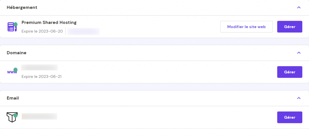 Votre compte Hostinger vous permet d’accéder à une zone réservée aux membres ou à un panneau de contrôle. Vous y trouverez un packet d’options que vous pouvez utiliser pour gérer vos sites Web et accéder à toutes les fonctionnalités supplémentaires que nous proposons, telles que les comptes de messagerie:
