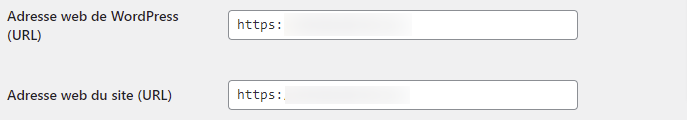 Vous verrez plusieurs options à l’intérieur. Cependant, les deux qui nous intéressent sont l’adresse WordPress (URL) et l’adresse du site (URL) :
