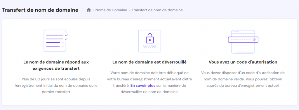 Pour transférer un nom de domaine d’OVH à Hostinger, vous devez suivre quatre étapes :