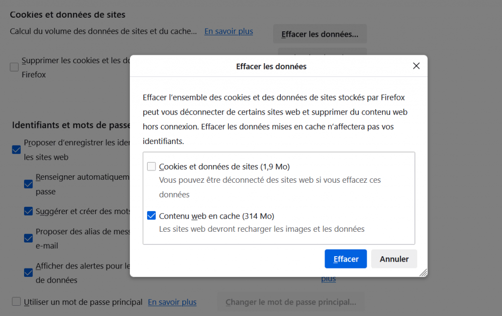 Tous les navigateurs offrent la possibilité de vider le cache et d’autres données du site dans leur menu des paramètres, mais les méthodes pour y parvenir peuvent varier légèrement d’un navigateur à l’autre. Veillez à suivre les étapes correctes en fonction du navigateur choisi.
