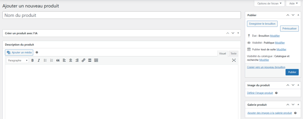 Commencez à ajouter des produits en cliquant sur Ajouter un produit. Vous serez redirigé vers l’éditeur de la page produit.