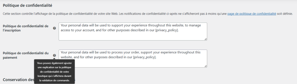 WooCommerce inclut également des infobulles pour de nombreux paramètres. Ainsi, si un paramètre vous laisse perplexe, il vous suffit de survoler l’icône du point d’interrogation pour obtenir une explication.