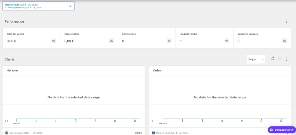 Avec WooCommerce, vous pouvez accéder à des rapports pour des périodes spécifiques.