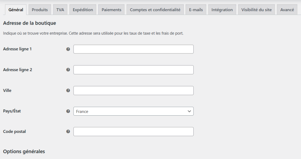 Notez que WooCommerce ne définit pas automatiquement les taux de taxe pour vous ou ne fournit pas de conseils sur la façon de le faire. C’est quelque chose que vous devrez régler vous-même, et vous pourriez vouloir consulter un professionnel de la fiscalité en premier lieu.