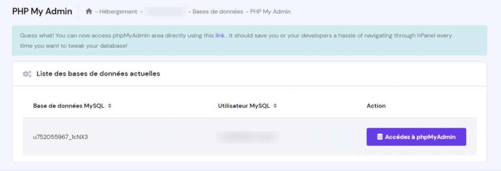 Ou mieux encore, nous avons déjà créé un lien direct unique pour vous permettre d’accéder à phpMyAdmin.