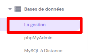 Dans Hostinger, par exemple, vous pouvez trouver le nom de votre base de données WordPress et le détail des hôtes dans la section bases de données du panneau de configuration.