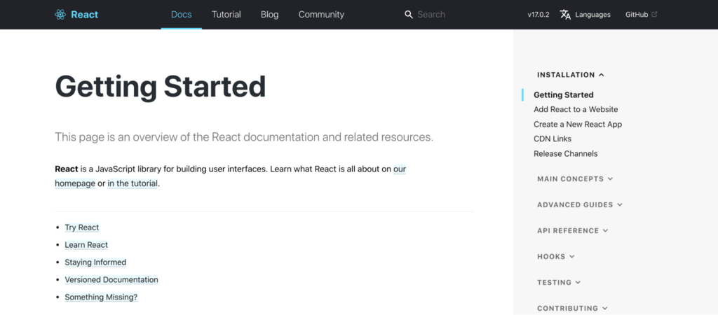 Avec le soutien de tant de sociétés multinationales, il n’est pas surprenant à ce que React dispose d’un support en ligne étendu, y compris une documentation officielle et des tutoriels utiles :