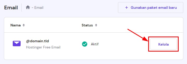 Anda dapat dengan mudah mengelola akun email Anda dari hPanel. Cukup buka bagian Email dan klik Kelola di samping domain atau subdomain: