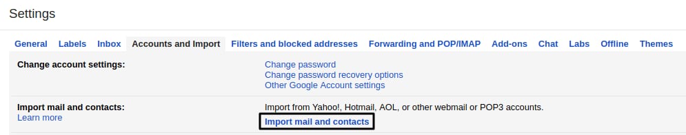 Kemudian, klik bagian Settings di pojok kanan atas. Pilih tab Accounts and Import, dan klik Import mail and contacts. Setelah itu, ikuti petunjuk yang ditampilkan di layar, dan pilih opsi Start import 😊
