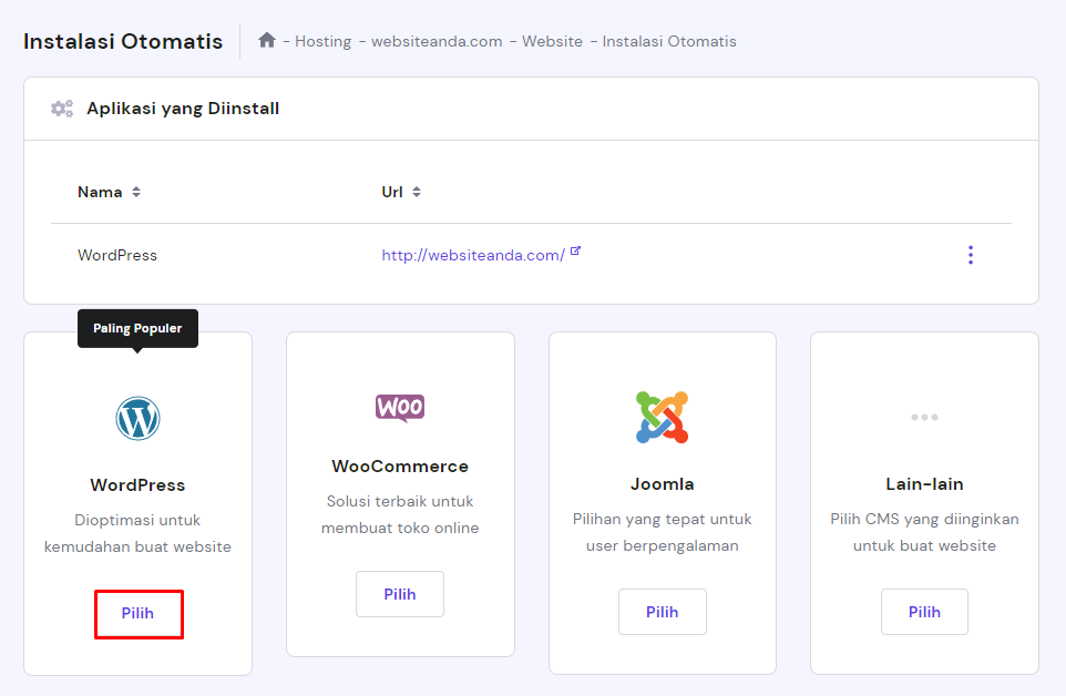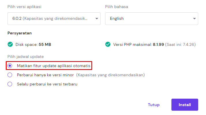 Berikut langkah-langkah menonaktifkan update otomatis melalui hPanel Hostinger: