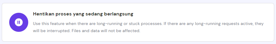 Sementara itu, user shared hosting bisa mengakses control panel hosting dan membuka halaman Statistik Penggunaan. Dari sini, scroll ke bawah hingga menemukan opsi Hentikan proses yang sedang berlangsung.