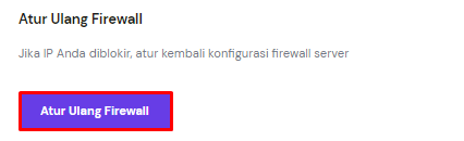 Atasi masalah ini dengan mereset konfigurasi firewall Anda. User VPS Hostinger bisa membuka panel admin, lalu ke bagian VPS > Pengaturan > Atur Ulang Firewall dan mengklik Atur Ulang Firewall.