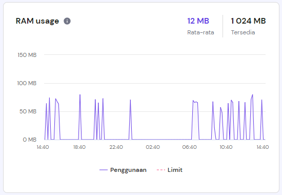 Pada grafik di atas, garis merah menunjukkan batas paket Anda saat ini, dan garis biru menunjukkan jumlah memori yang digunakan oleh website. Saat batas memori ini terlampaui, performa website Anda akan melambat secara keseluruhan, sehingga muncul error 503.