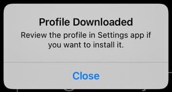 Buka menu Settings di aplikasi perangkat. Jika menggunakan browser Safari, notifikasi Profile Downloaded akan ditampilkan. Klik notifikasi tersebut: