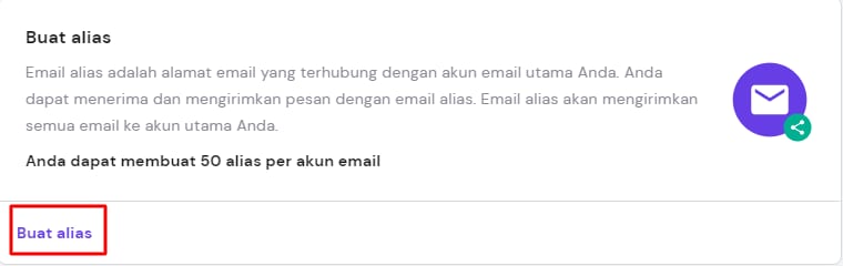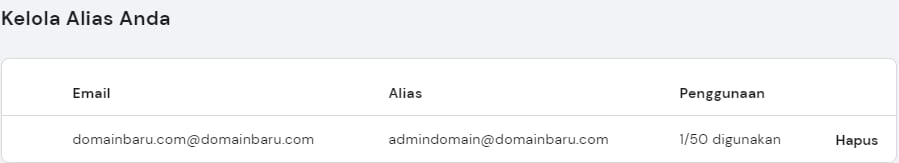 Anda bisa melihat semua email alias di halaman yang sama pada bagian Kelola Alias Anda: