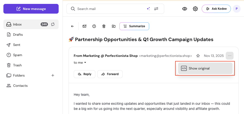 - Pilih Tampilkan pesan asli.