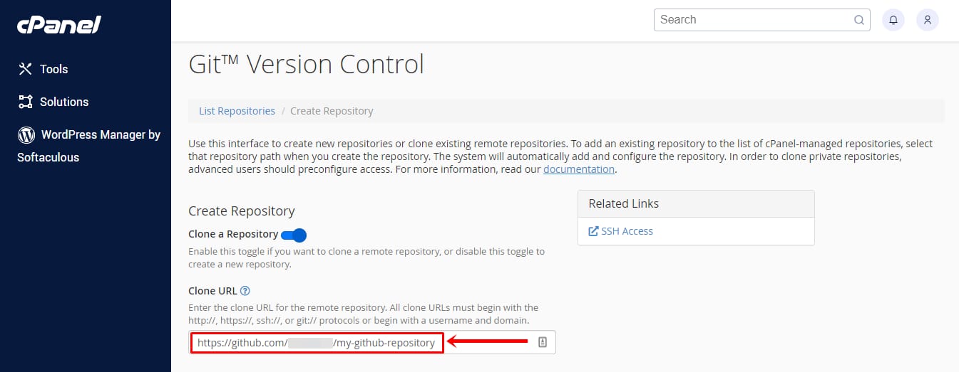 Untuk mulai menggunakan fitur ini, Anda perlu membuat repositori terlebih dahulu dengan Git Version Control pada cPanel.