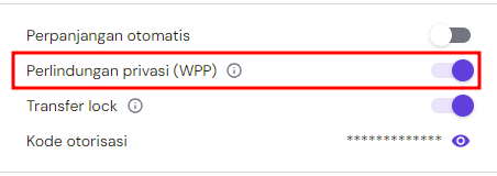 - Di halaman Ringkasan Domain, aktifkan tombol Perlindungan privasi (WPP).