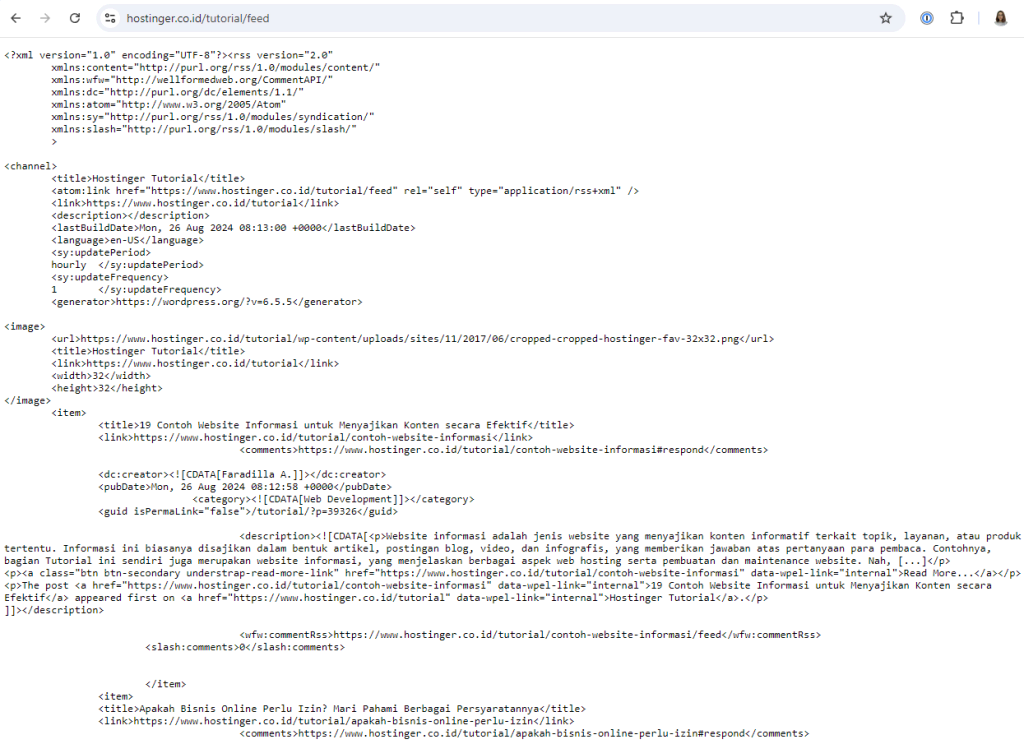 RSS feed WordPress akan menghasilkan file XML yang berfungsi untuk mendeteksi postingan, halaman, komentar, dan kategori postingan secara otomatis.