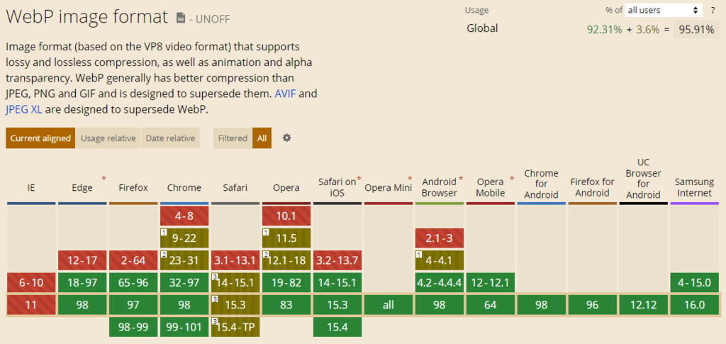 Meskipun dukungan WebP pada sejumlah web browser utama kini semakin luas, beberapa browser masih tidak mendukung jenis file ini.