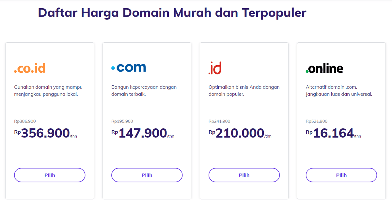 Harga domain akan berbeda-beda tergantung ekstensinya. Ada tiga TLD yang paling populer: