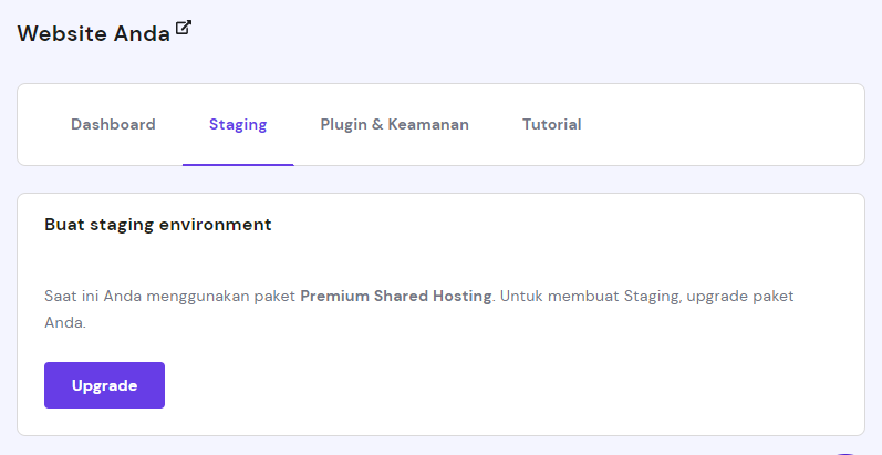 Hostinger juga menawarkan staging environment yang bisa Anda akses dari hPanel. Fitur ini tersedia untuk pengguna Business Shared Hosting dan web cloud hosting.