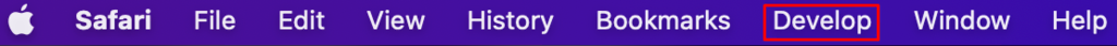 Sebelum menggunakan tool Inspect Element di Safari, Anda harus mengaktifkan menu Develop: