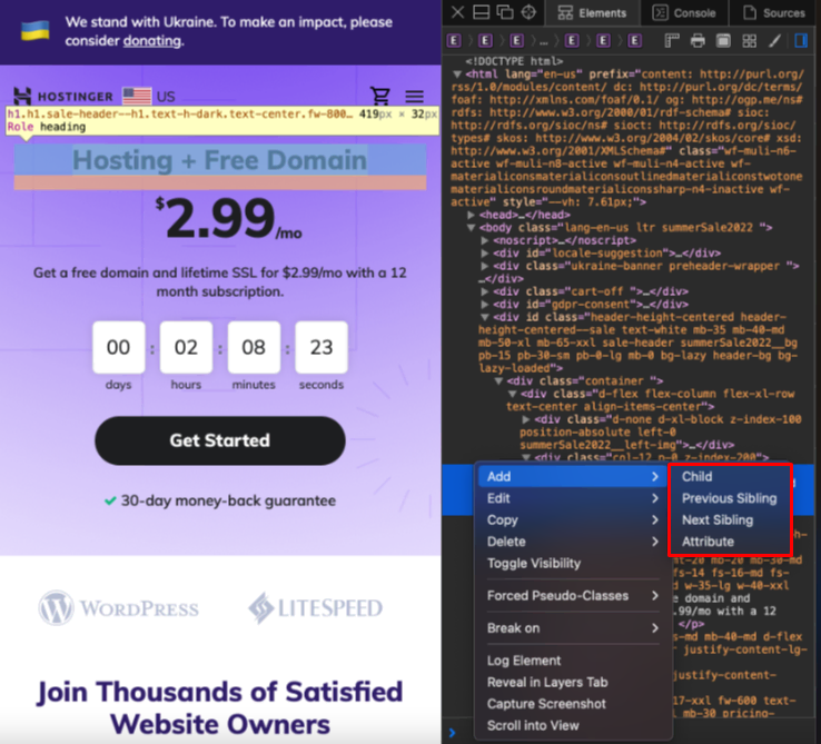 - Buka sebuah website. Kami mengakses hostinger.com pada contoh ini.