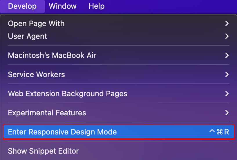 - Setelah Anda mengaktifkan fitur tersebut, opsi Develop akan ditambahkan ke menu.