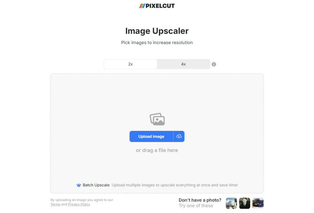 Gunakan Pixelcut secara gratis untuk memperbesar resolusi gambar Anda menjadi HD. Anda bisa memanfaatkan tool ini tanpa harus login.