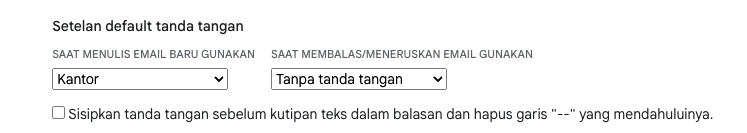 - Tentukan apakah signature akan digunakan di email baru, balasan, atau forward.