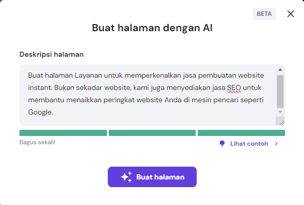 Apabila memilih paket Business atau Cloud, Anda bahkan bisa memanfaatkan AI Website Builder untuk WordPress. Dengan tool ini, Anda bisa membuat website siap pakai hanya dalam hitungan menit, loh!