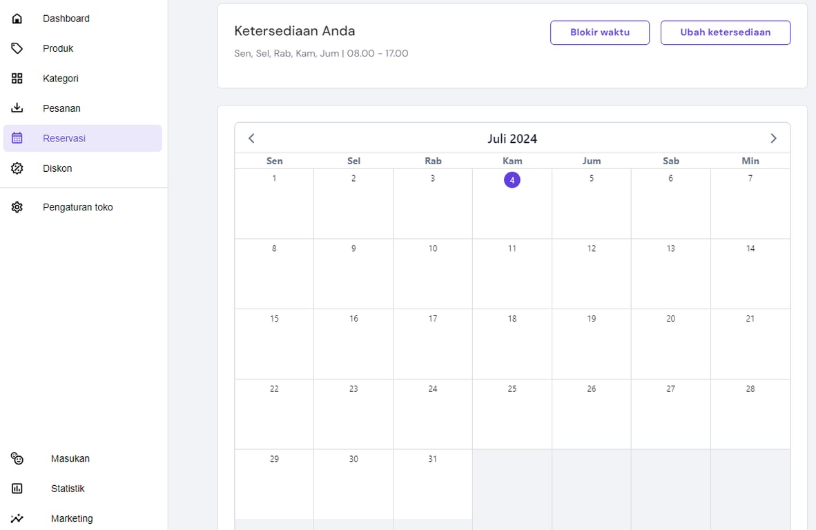 Selanjutnya, Anda perlu mengatur jadwal ketersediaan agar calon pelanggan bisa memesan layanan Anda di waktu yang sesuai. Untuk memberikan pengalaman terbaik, pastikan Anda mengatur jadwal dengan cermat.