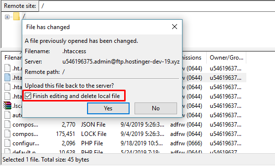 2. Centang opsi “Finish editing and delete local file” (Selesaikan edit dan hapus file lokal) sebelum mengklik Yes.