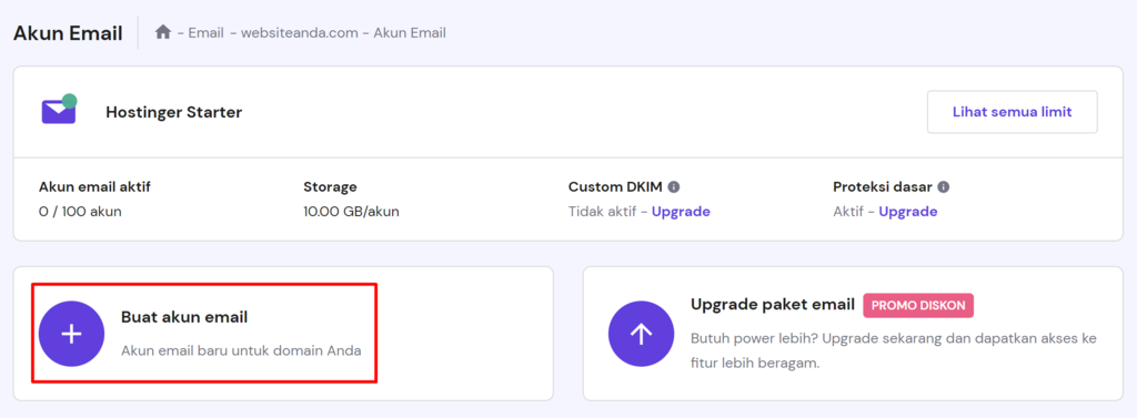 Berikut adalah langkah-langkah membuat email menggunakan Hostinger: