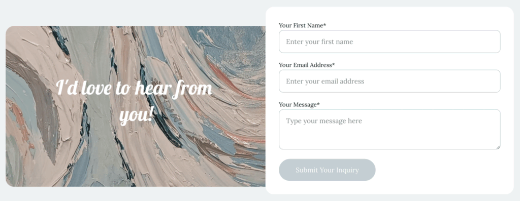 Mulailah dengan menyediakan cara yang mudah bagi pelanggan untuk menghubungi Anda. Misalnya, Anda bisa menambahkan formulir kontak di website dan mengajak pelanggan untuk menghubungi Anda, seperti yang dilakukan oleh Lolo and Co Art.
