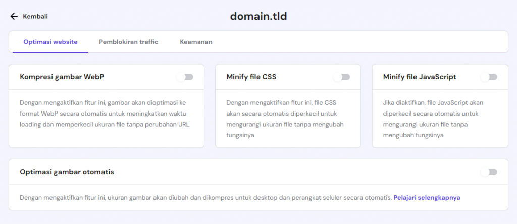 Anda bisa mengatur CDN secara terpisah, misalnya setting Cloudflare dengan WordPress. Untungnya, beberapa provider managed WordPress hosting seperti Hostinger sudah menyertakan CDN dalam layanannya. Kalau menggunakan paket Business atau yang lebih tinggi, aktifkan CDN Hostinger dengan langkah-langkah berikut: